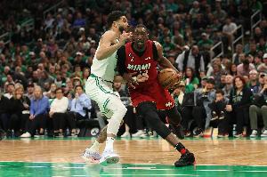 本场比赛,热火球员阿德巴约出战38分钟21投10中,三分10中5、罚球8中4拿到29分10篮板2助攻2抢断,正负值-23。塔图姆21中9砍下25分18板11助,正负值+7。